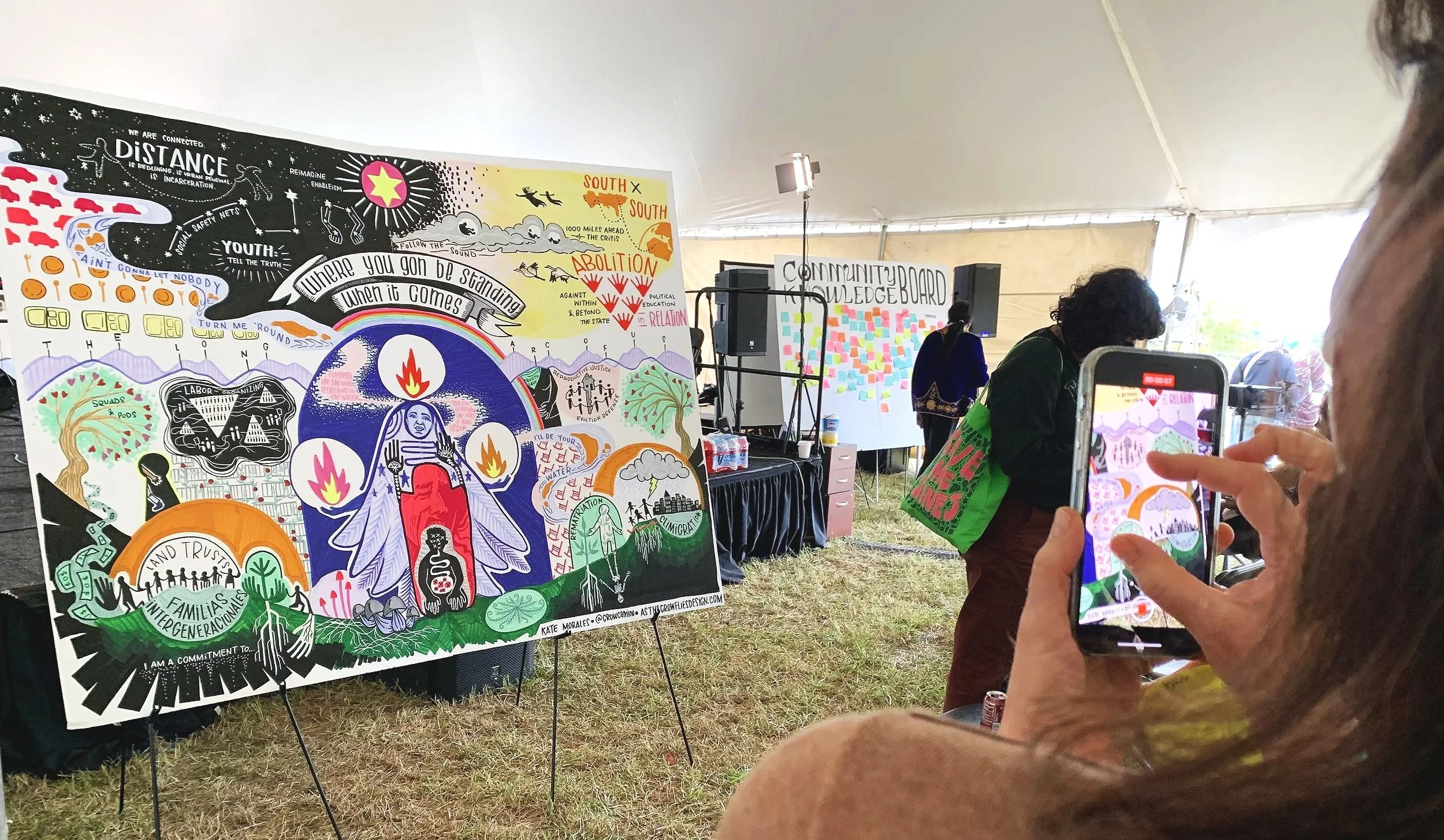 “It is always a deep honor when I get to work with Kate. Their visuals set the mood and tone of a room and their graphic facilitation is practiced with careful listening that mirrors back the heart of what is unfolding within a group. Their group facilitation invites people to dream into possibilities that bring forth more dignity, respect and interconnected living.”